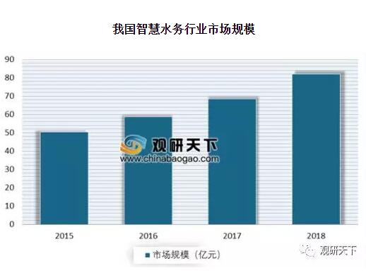 據數據顯示,2017年中國智慧水務市場規模增長至約68.59億元,同比增長17%。2018年中國智慧水務行業市場規模達82億元左右。隨著物聯網、大數據、云計算及移動互聯網等新技術不斷融入傳統行業的各個環節,工業純水設備新興技術和智能工業的不斷融合,智慧水務行業發展具有明顯的前景。