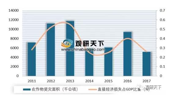 2011-2017年我國農作物受災面積情況
